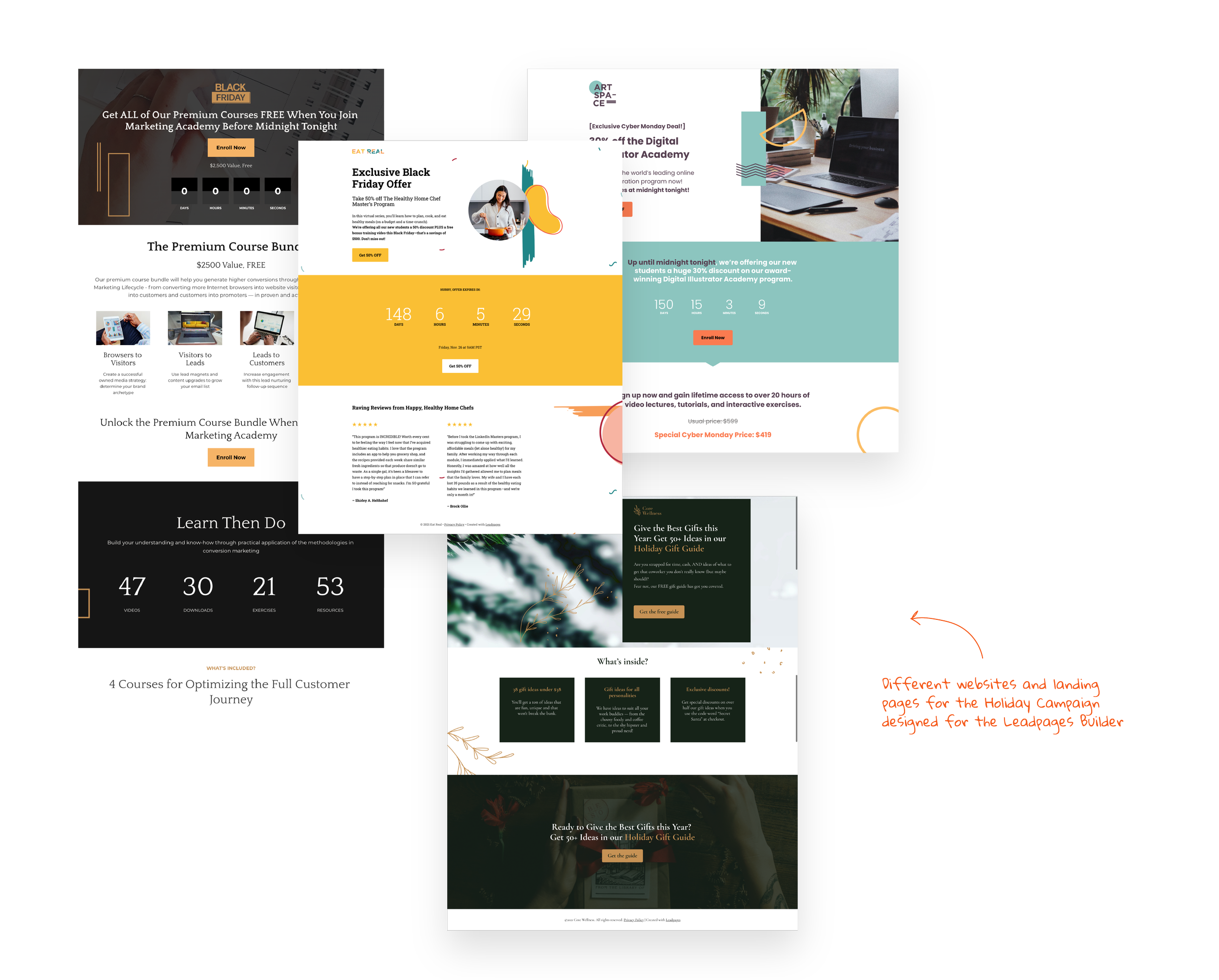 Designing landing page templates and graphic illustrations for the Holiday Hustle Campaign