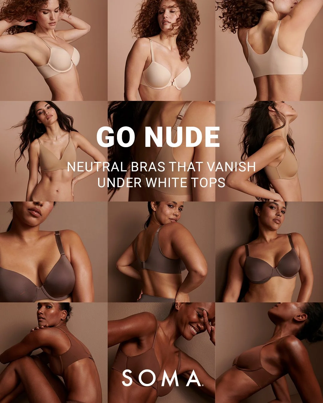 I was part of a team that designed all the visuals and marketing for the new Soma® stores that opened. We created banners featuring grids of images showcasing the different bras sold at Soma® to be placed on the windows. Additionally, we designed small bra cards that displayed the different bras offered at Soma and explained why customers should buy them. These bra cards were strategically placed around the store to help customers navigate and find the right bras for them.